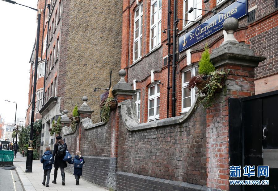 3月8日,一名女子在英国伦敦一家小学门口送孩子上学。根据英国政府此前公布的分四步逐步解除新冠防疫措施路线图,英格兰地区所有学校于3月8日复课,迈出分阶段“解封”第一步。