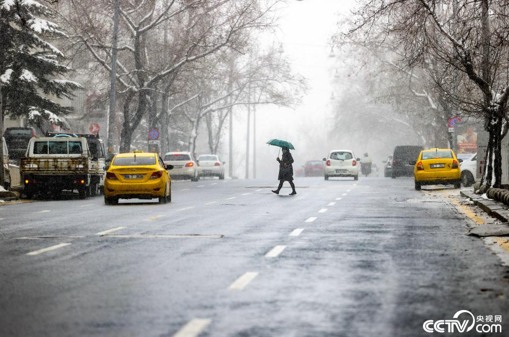 当地时间2021年3月25日,土耳其首都安卡拉迎来降雪天气。