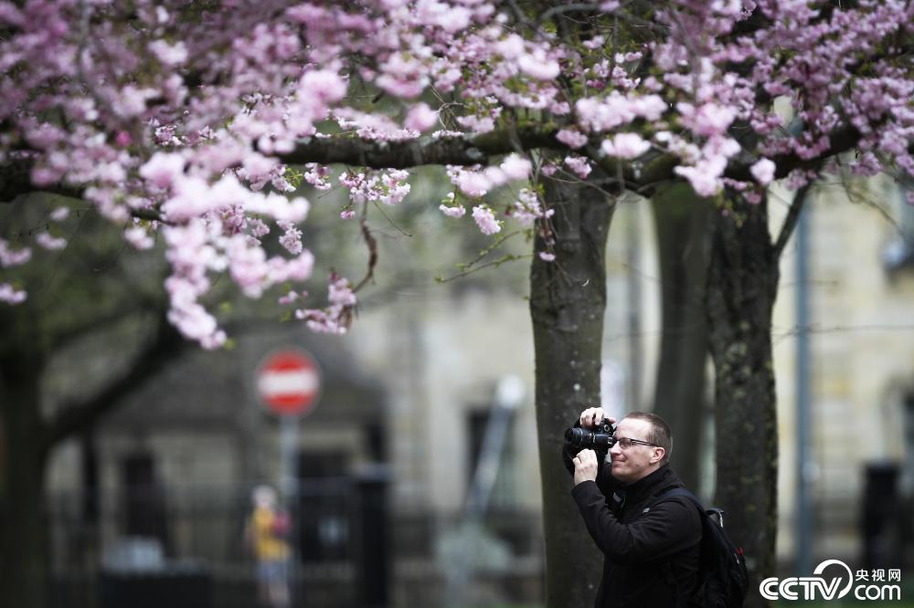 当地时间2021年3月31日,苏格兰格拉斯哥,当地春暖花开,樱花绽放。