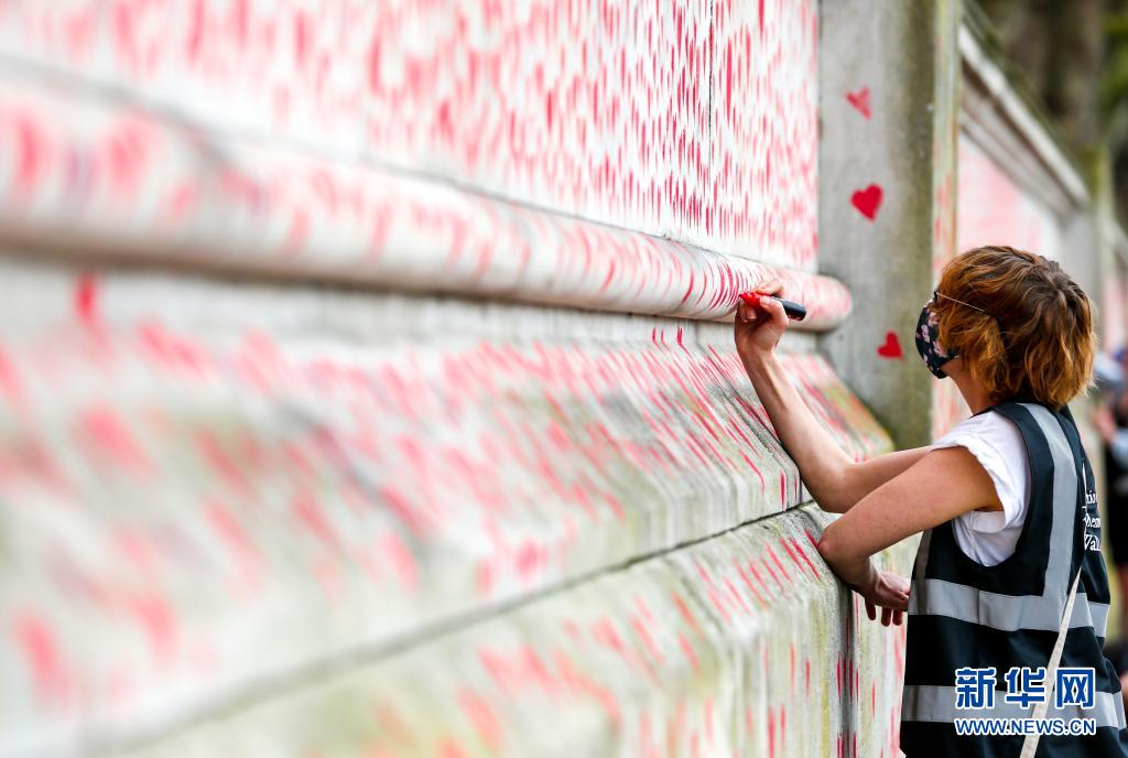 为了纪念在新冠疫情中去世的人们,英国伦敦议会大厦对面的泰晤士河沿岸设立了国家新冠纪念墙。逝者的亲友和志愿者从本周开始在几百米长的纪念墙上画上红色的心,每一颗心代表一名因新冠去世的英国人,表达对逝者的哀思。