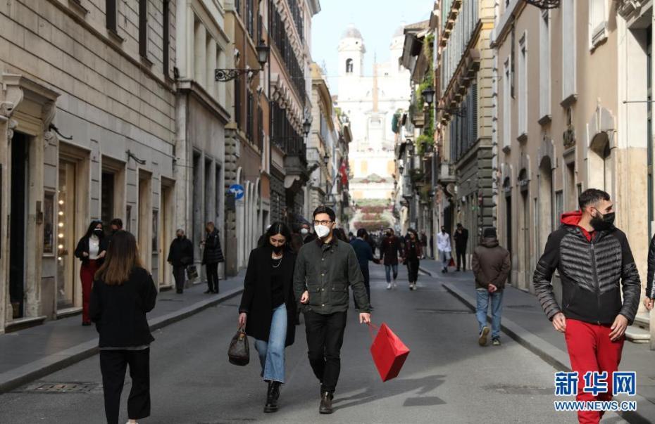 4月21日,人们在意大利首都罗马逛街购物。意大利总理德拉吉的内阁21日公布了一项具体路线图,准备从4月26日起放松新冠疫情管控措施。