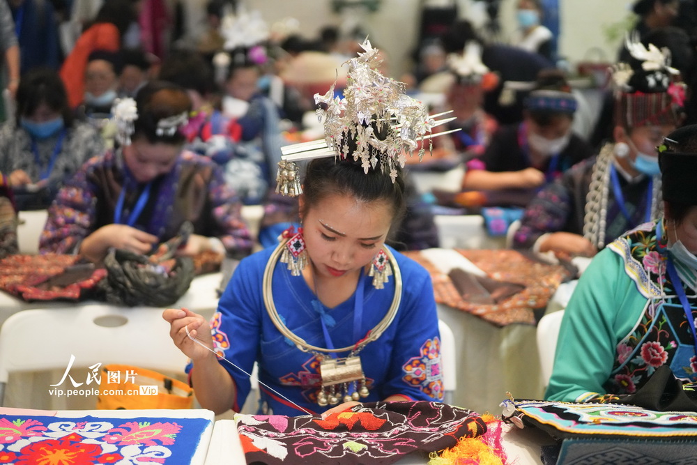 4月23日,2021年贵阳妇女特色手工技能及创新产品大赛在贵州省博物馆多功能厅开赛。此次大赛以“巾帼行动、匠心圆梦”为主题,集中展现了贵阳市实施“锦绣计划”传承中华优秀传统文化、促进贵阳市妇女创业就业的成果。34名选手展示刺绣、蜡染、银饰等技艺,打造一场指尖上的艺术盛宴。