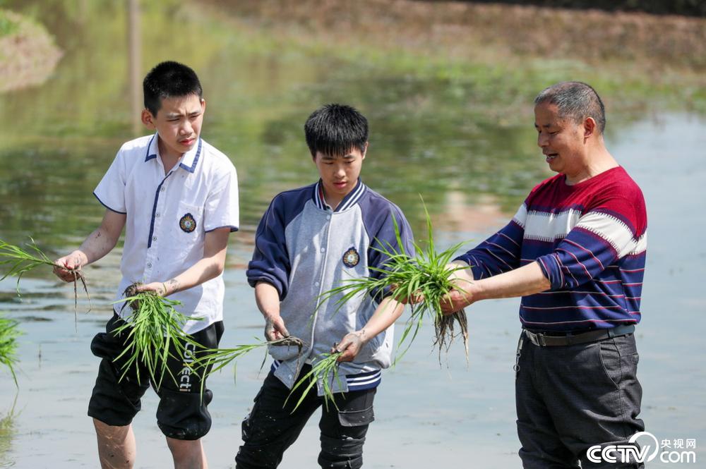 2021年04月29日,四川省华蓥市永兴镇马架坪村八组的农民, 在田间给华蓥中学初中二年级二班的学生传授秧苗的正确栽法。眼下正是秧苗栽插时节,四川省华蓥中学初中二年级二班趁上劳动课的机会,组织学生来到永兴镇马架坪村八组的春耕现场,听农民传授秧苗的培育、管理、移栽等农事知识,学习体验秧苗的正确栽插方法,感受劳动的艰辛与快乐。