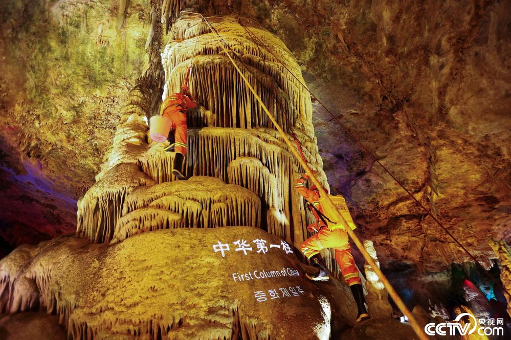 据了解,这些石钟乳星罗棋布造型奇特,深藏于伏牛山支脉鸡冠山的山腰腹地已有几十万年之久,洞内的石笋、石钟乳100年才能增加1公分,此类洞穴在北方极为少见,被誉为北国第一洞府。据鸡冠洞办公室工作人员介绍,这次主要是对洞内的石钟乳进行去除氧化物和浮尘的清理和养护。在五一假期到来之时,经过这场“洗面”之后,这座地下宫殿将会有一个新的面貌迎接八方宾朋。