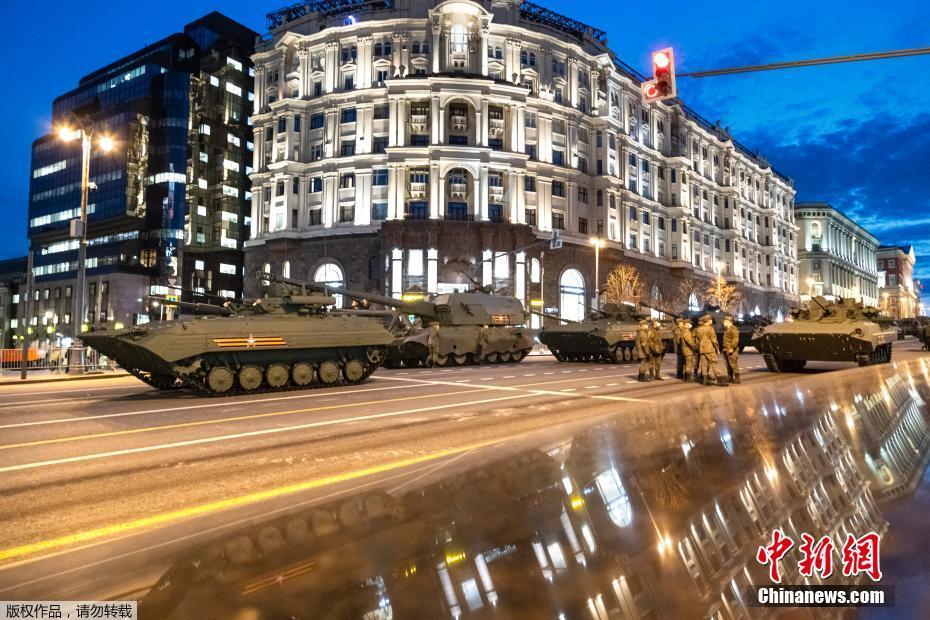 当地时间4月29日,俄罗斯莫斯科,俄罗斯胜利日阅兵式夜间彩排在红场举行,大量军车沿着着特沃斯卡亚街驶向红场。据报道,俄罗斯纪念卫国战争胜利76周年阅兵式将于5月9日在莫斯科举行。