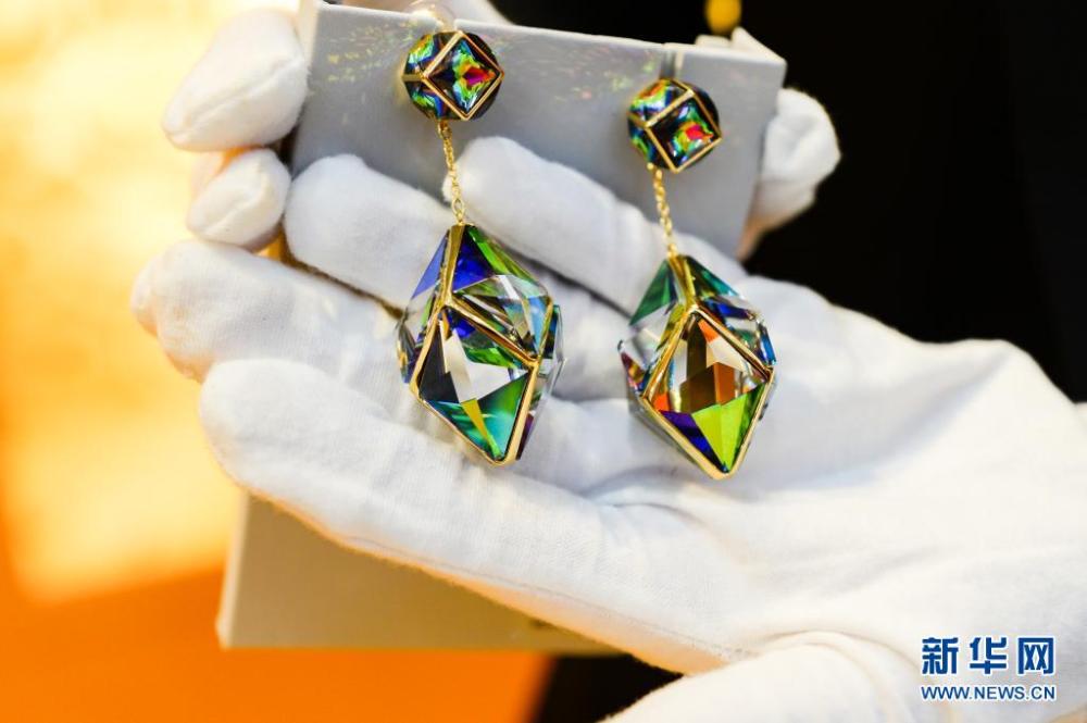 这是5月7日在消博会现场拍摄的参展饰品。首届中国国际消费品博览会在海南省海口市举行,珠宝、时尚生活等展区的展品,吸引众多观众现场咨询、采购。
