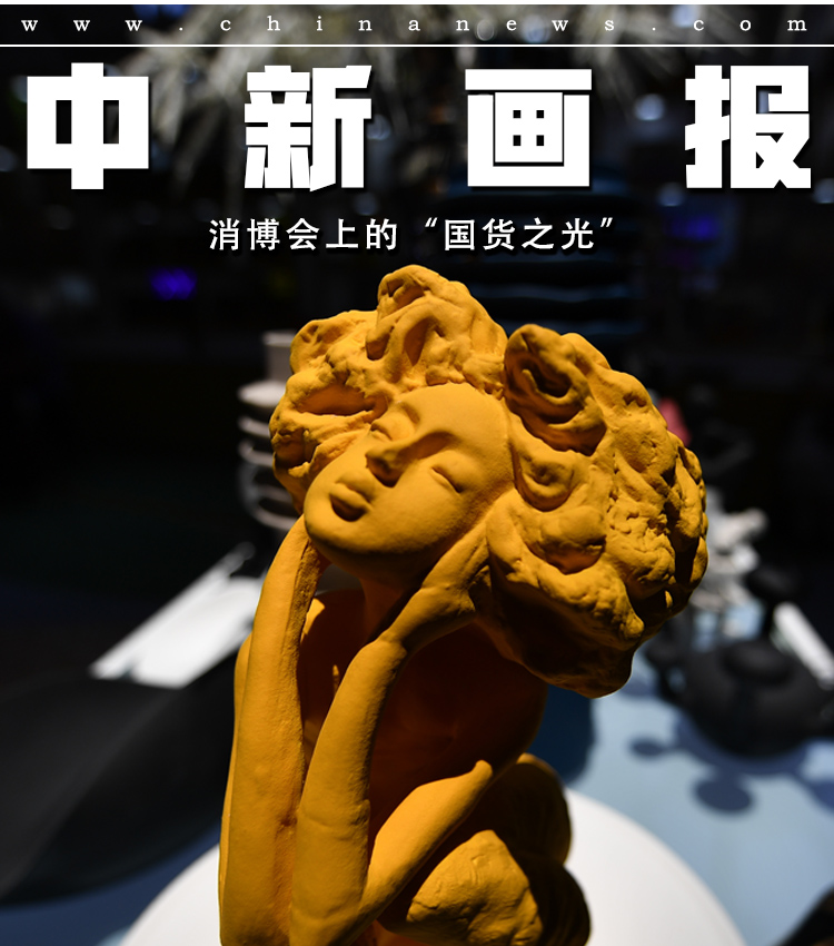 全球精品汇聚中国国际消费品博览会,在这场“买买买”的盛宴里,我们的国货产品乘风破浪,“国货之光”闪耀世界舞台。 图为江西馆展出的景德镇陶瓷艺术品。