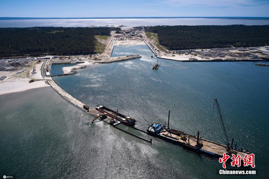 当地时间5月10日,波兰北部Skowronki的维斯瓦河岬的航道施工现场。该项目将通过海上连接维斯瓦河环礁湖和格但斯克湾来实施,目的是缩短、加深和简化通往波罗的海的海上航线。