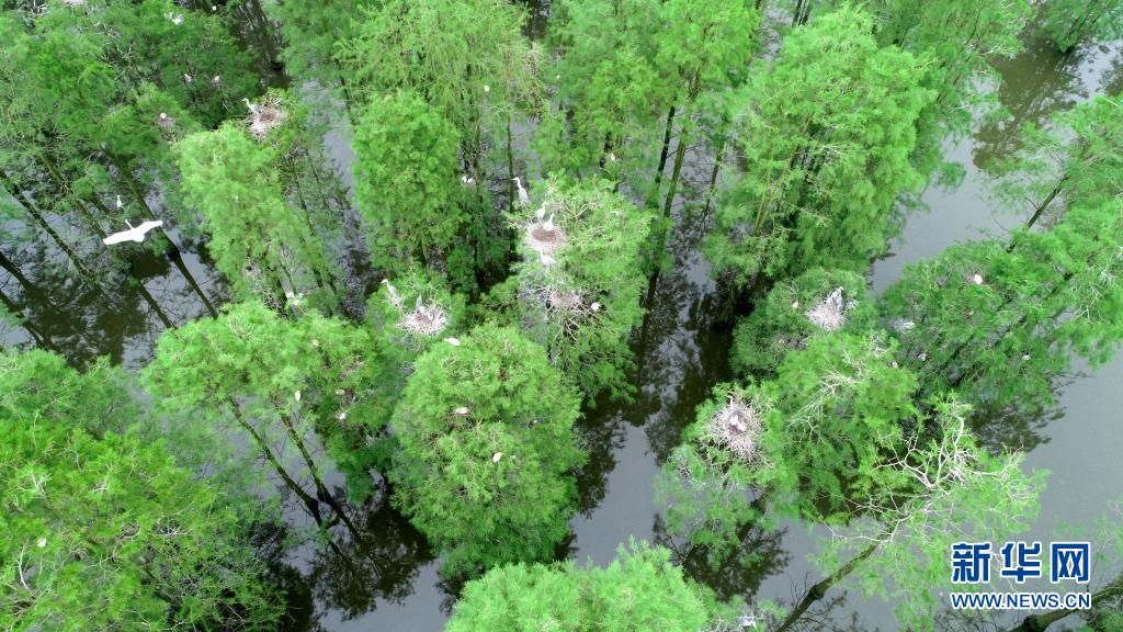 位于安徽省滁州市来安县雷官镇的池杉湖国家湿地公园经过多年的生态修复,形成分布数万株池杉树、具有独特观赏价值的“水上森林”湿地景观,成为众多鸟类生活、栖息的“天堂”。