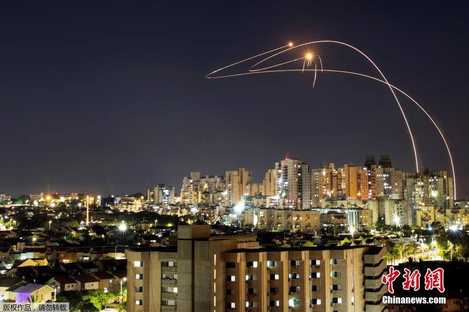 当地时间5月14日,巴以冲突持续升温,以色列国防军对加沙地带发动了包括空袭和炮击在内的猛烈进攻。与此同时,巴勒斯坦伊斯兰抵抗运动(哈马斯)也不甘示弱,持续向以色列境内发射火箭弹,累计发射数量已超过2000枚。图为以色列“铁穹”防空系统拦截从加沙地带向以色列阿什凯隆发射的火箭弹。