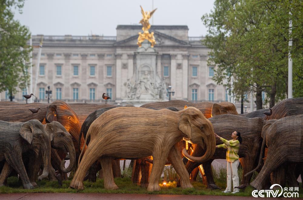 当地时间2021年5月15日,英国伦敦,一群大象的雕像出现在伦敦市中心,这些雕像由大象家族信托基金创建,以强调人类保护环境和野生动物的重要性。