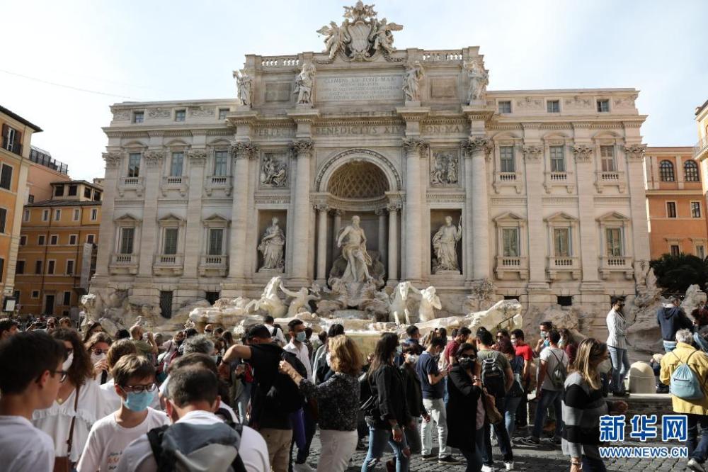 5月15日,游客在意大利首都罗马的许愿池前游览。意大利16日正式对部分国家的游客开放边境。
