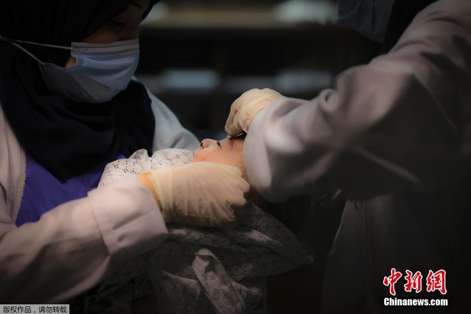 5月17日消息,加沙al-Shati难民营在当地时间5月15日遭袭,一名5个月大的婴儿幸存,其他7名家庭成员全部遇难。图为婴儿在医院接受治疗。