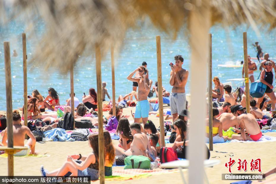 当地时间2021年5月16日,意大利卡塔尼亚,众多游客在海滩上沐浴阳光享受初夏。随着意大利疫情管控措施放宽,“橙色”区域的大部分海滩浴场都已重新开放,并迅速被游客占领。