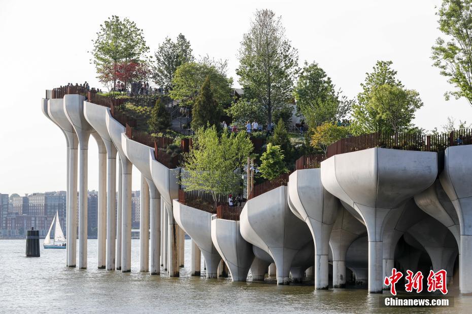 当地时间5月21日,美国纽约一座名为“Little Island”的河面悬浮空中公园正式免费向公众开放。耗资2.6亿美元建造的该公园是位于曼哈顿西侧哈德逊河中的人造小岛,由上百个郁金香造型的混凝土盆柱错落相连,形成一片高低起伏的绿地。