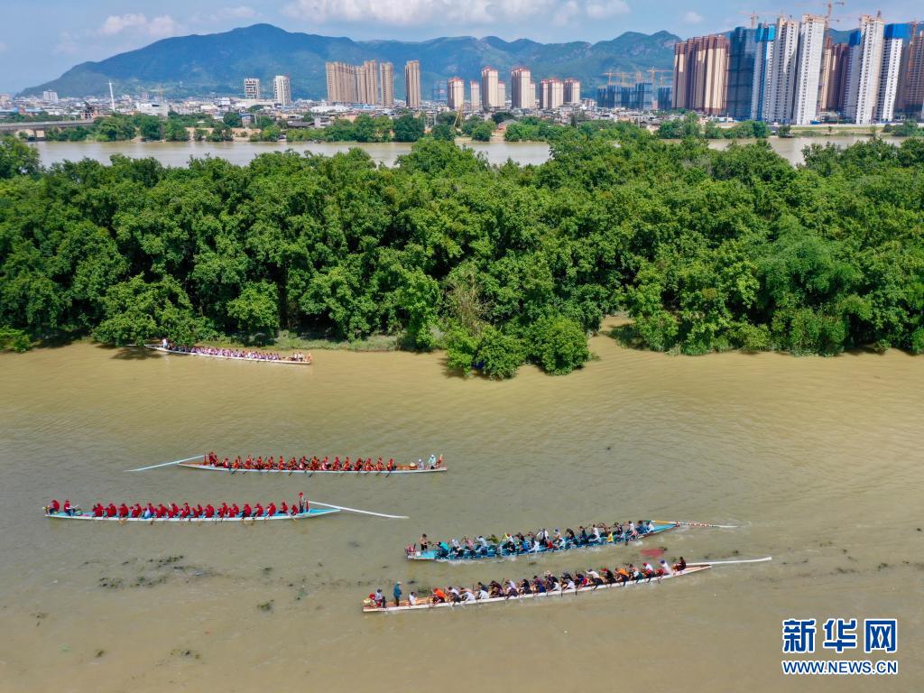 端午节临近,在福建省福州市闽侯县,民间龙舟在大樟溪南港段,以传统龙舟竞渡的方式迎接端午节的到来。