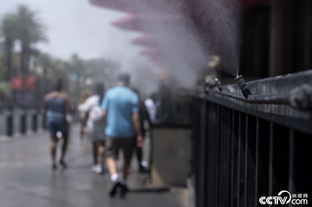 当地时间2021年6月16日,美国科罗拉多州,当地民众在喷泉下降温。连日来,美国西部多地遭遇创纪录高温,大约5000万美国人15日面临“高温警告”,一些地区最高气温或逼近50摄氏度。