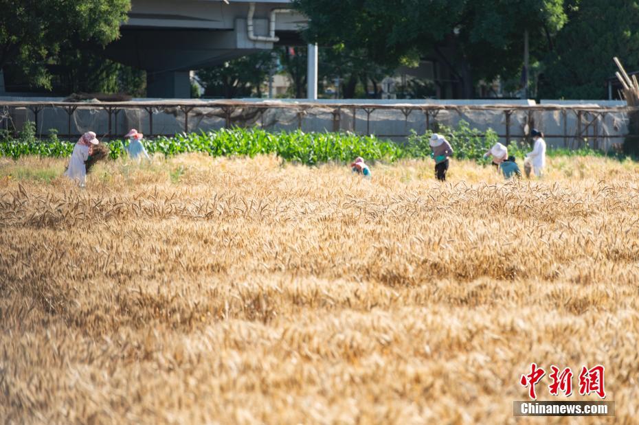 6月19日,位于北京市北三环联想桥附近的中国农业科学院作物科学研究所科普基地内,科研及工作人员在小麦试验田中劳作。这片面积约150亩的试验田内的小麦近日迎来成熟期,收获在望。