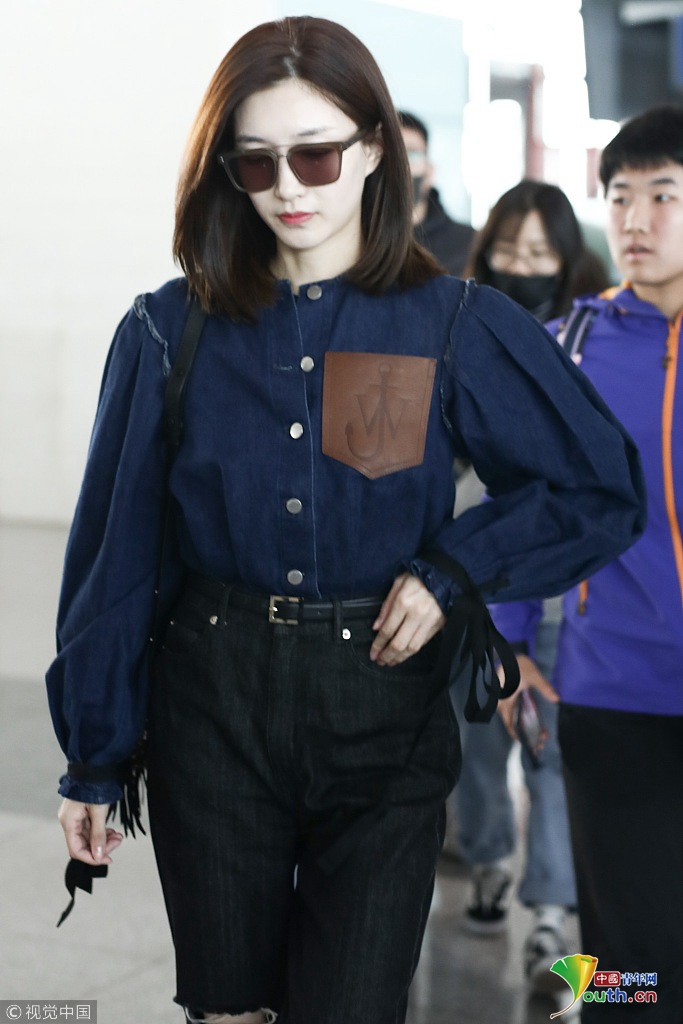 2018年11月2日,江疏影现身北京机场。江疏影衬衫配高腰裤大玩“男友风” ,她还冲粉丝俏皮挥手似翩翩起舞 ,撩发插兜帅得不要不要的!