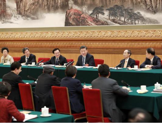 2019年3月5日,中共中央总书记、国家主席、中央军委主席习近平参加十三届全国人大二次会议内蒙古代表团的审议。 3月5日下午,习近平来到他所在的内蒙古代表团参加审议。他健步走入会场,鄂温克族代表梅花向他献上美丽的蓝色哈达。 “内蒙古生态状况如何,不仅关系全区各族群众生存和发展,而且关系华北、东北、西北乃至全国生态安全。”会上,习近平一语道出内蒙古在生态方面重要而特殊的地位。 张继新、于立新、吴云波等八位代表先后发言。习近平叮嘱大家:“保持加强生态文明建设的战略定力,探索以生态优先、绿色发展为导向的高质量发展新路子,加大生态系统保护力度,打好污染防治攻坚战,守护好祖国北疆这道亮丽风景线。” 生态保护是全国一盘棋,如何算大账、算长远账、算整体账、算综合账,习近平思虑深远。 “把内蒙古建成我国北方重要生态安全屏障,是立足全国发展大局确立的战略定位,也是内蒙古必须自觉担负起的重大责任”; “不能因为经济发展遇到一点困难,就开始动铺摊子上项目、以牺牲环境换取经济增长的念头,甚至想方设法突破生态保护红线”; “解决好人民群众反映强烈的突出环境问题,既是改善环境民生的迫切需要,也是加强生态文明建设的当务之急”; …… 一系列论述,为生态文明发展画出新的坐标,指明前进方向。 千里之外,内蒙古阿拉善右旗牧民侍明斌坐在电视机前,收看了习近平参加内蒙古代表团审议的新闻。 “我的家乡在腾格里沙漠边缘,原来向大自然要资源,结果环境差了、地也荒了,后来开始种梭梭,不仅治住了流沙,还成了致富的‘绿色银行’。”侍明斌激动地说。