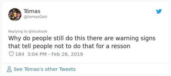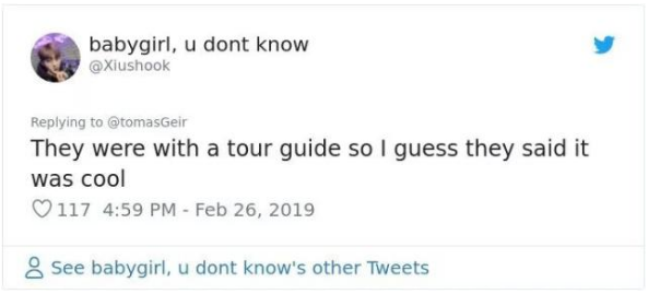最近,国外的一个老奶奶火了,原因就是她在旅游拍照时候发生了一件惊险的事…… 照片里这个妹子名字叫Catherine,她本人在韩国工作,她的家人则住在美国,照片旁边的是她的父亲。 ![]() 根据妹子的讲述,当时,她的父亲和奶奶一起在冰岛旅行。 为什么选择冰岛旅行? 因为她的奶奶想体验一下“北欧的自然风情” ![]() 当时,他们和其他游客一起在冰岛某处的海边,正体验着北欧的自然风情,寒冷的天气,海边结着大大小小的冰块。本来,这对母子在这个寒冷的国度玩得不亦乐乎,一切都Ok,直到他们看到了一块大冰块…… 老奶奶说这个冰块挺像一个王座?? 好奇心,可能是人类的天性,即便是已经六七十岁的老奶奶也不例外。 这个老奶奶看到这个冰块后,决定上去坐一下,顺便让自己的儿子给自己拍几张照片留念…… 当时情形就是这样... ![]() 此处应有权游背景音乐... 这个儿子咔嚓咔嚓照了几张照片,就在这时,意想不到的一幕发生了... 这时,一个大浪打了过来,这块本来在岸边的冰块,就这么被冲到海里去了! ——关键老奶奶还在冰上啊!! ![]() 眼看坐在“王座”上这么漂走了,老奶奶急了,连忙调节自己身体保持平衡,以防自己掉进海里。 看见自己妈被漂走,岸边的儿子更急了,大呼救命…… ![]() 幸运的是,当时有一个专业救援人员在场,这个救援人员最终用船把老奶奶拉回了岸边。 据说当时老奶奶已经漂了很远了... 其实当时在老奶奶之前,已经有其他几个游客到那冰块上拍照了,只不过刚好老奶奶倒霉,遇到了这样的“漂流事件”,不过幸好最终有惊无险。 ![]() 这对母子也没有被这次意外影响到心情,继续他们的冰岛之旅。 妹子的老爸把这次事件的照片还有经过发给妹子,妹子Po上网后,网友们都乐坏了 ![]() “可怜的奶奶(笑)” ![]() “不好意思,我忍不住笑了。幸好她安全无事啊!” 但也有网友批评了这种行为: ![]() “已经有警告标示放那让大家不要去做这种行为了,为什么人们还要去做?” 也有网友解释说: ![]() “他们当时和一个导游一起,所以才觉得没事吧” 来源:齐鲁晚报 |