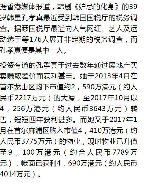 翟天临学术不端事件引起了国内学术圈大批量的论文审查,韩国也在“胜利案”爆发后对韩国娱乐圈进行了大整顿。 近日,韩国女艺人孔孝真就成了韩国国税厅的审查对象。 据港媒报道,孔孝真在过去数年通过赚取买卖房地产的巨额差价来获利,在之前的短短四年里,她靠炒一套大厦赚取了人民币1426万元,可以说是十分的“投资有道”了。 ![]() (孔孝真) 尝到甜头的她又在2017年买下了市值人民币3775元的物业,现如今,那个物业已经升值到了人民币7789万元,光账面差额就高达人民币4014万元。 要知道,韩国娱乐公司可是出了名的剥削艺人,虽然孔孝真是韩国知名女明星,但是如此高额的金钱光靠工作可是很难赚取到的。 ![]() (港媒报道) 据说,此番国税厅除了调查孔孝真外,也向人气网红、艺人及运动选手等多达176人展开了非定期的税务调查。 按照最近韩国娱乐圈一个瓜牵出一个瓜的套路和节奏,小编大胆猜测被调查的诸多人中可能还会有人牵涉进税务里去。 不过也有网友觉得很无语,认为这也太莫名其妙了。“这都管,韩国未免太严格了……” ![]() (网友评论) 感觉自从胜利案曝光之后,韩国艺人的各种丑闻就层出不穷。 首先是万恶源头李胜利求锤得锤,被锤“死”后被封杀。 ![]() (胜利) 之后郑俊英就被曝出偷拍聊天室这一丑闻,经过调查发现,他的“黄金手机”里满满都是大瓜,真是一个“宝藏男孩”,于是也喜提封杀。 在曝光了一波又一波男艺人之后,首位出演《监狱风云》的女主角也出现了,朴有天前女友黄荷娜涉嫌吸毒,贿赂女大学生;之后的每一天里,就是看她花样狡辩,一天一证词,简直比电视剧还要精彩。 黄荷娜的证词里说,自己是被熟人下毒。这一番证词在经过各种发酵之后被大家猜测是朴有天,而朴有天也不负众望的下场澄清,就在吃瓜群众们准备新一轮的推测时,黄荷娜又自曝共犯就是朴有天。 ![]() (朴有天) 简直一瓜更比一瓜强! 吃了这么多瓜,不知道的还以为现在的韩国娱乐圈其实主业是种瓜田的,副业才是娱乐行业呢。 来数数看,目前为我们提供了瓜源的有李胜利、郑俊英、黄荷娜、朴有天、孔孝真……一只手都要数不过来了呢。也不知道下一波瓜会带来什么样的“惊喜”呢。 |