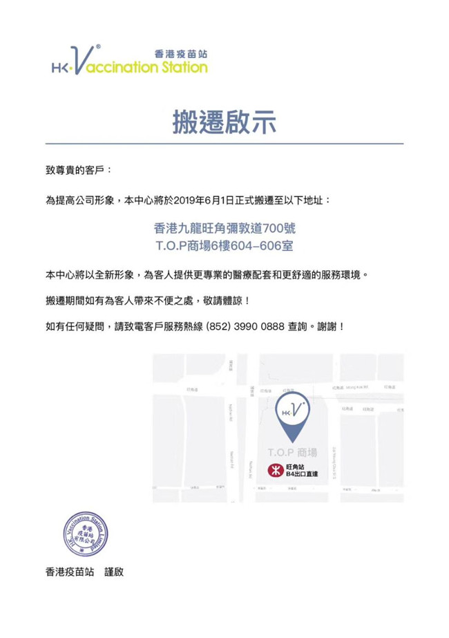 香港“水货九价HPV(人乳头瘤病毒)疫苗”事件曝光后,日前,多位此前赴港接种九价HPV疫苗的接种者告诉记者,部分疫苗接种机构出现了暂时停业、搬迁的情况。有机构声称“因香港麻疹疫情爆发”,延后接种时间到七月份;也有机构称“为了提高公司形象”,将进行搬迁。 此前发生“辱骂接种者”事件的香港现代医疗诊所旗下的香港疫苗站,据消费者提供的公告显示,“为了提高公司形象”将进行搬迁。 5月27日,记者根据该公告提供的固定电话联系到现代医疗一名客服人员,其表示搬迁属实,原因为“店铺租约到期”。