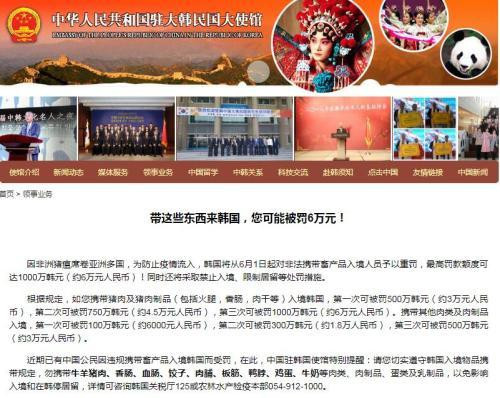 中新网5月29日电 据中国驻韩国大使馆网站消息,因非洲猪瘟席卷亚洲多国,为防止疫情流入,韩国将从当地时间6月1日起,对非法携带畜产品入境人员予以重罚,最高罚款额度可达1000万韩元(约合人民币6万元)。同时,还将采取禁止入境、限制居留等处罚措施。驻韩国大使馆特此提醒中国公民,切实遵守韩国入境物品携带规定。 ![]() 图片来源:中国驻韩国大使馆网站截图 根据规定,如携带猪肉及猪肉制品(包括火腿,香肠,肉干等)入境韩国,第一次可被罚500万韩元(约合人民币3万元),第二次可被罚750万韩元(约合人民币4.5万元),第三次可被罚1000万韩元(约合人民币6万元)。携带其他肉类及肉制品入境,第一次可被罚100万韩元(约合人民币6000元),第二次可被罚300万韩元(约合人民币1.8万),第三次可被罚500万韩元(约合人民币3万元)。 近期,已有中国公民因违规携带畜产品入境韩国而受罚,在此,中国驻韩国使馆特别提醒:请切实遵守韩国入境物品携带规定,勿携带牛羊猪肉、香肠、血肠、饺子、肉脯、板筋、鸭脖、鸡蛋、牛奶等肉类、肉制品、蛋类及乳制品,以免影响入境和在韩停居留,详情可咨询韩国关税厅125或农林水产检疫本部054-912-1000。 |