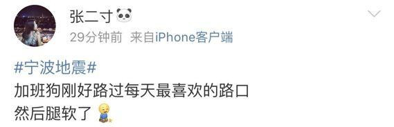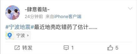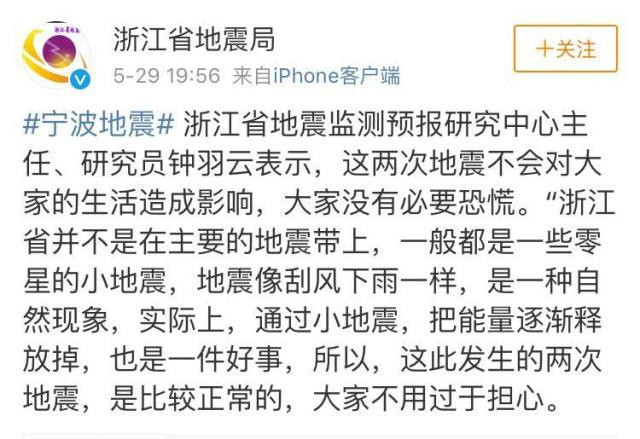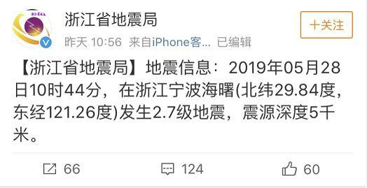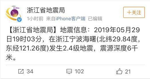什么? 又地震了? 是的,没错! 浙江省地震局发布信息,2019年05月29日19时03分,在浙江海曙(北纬29.84度,东经121.26度)发生2.4级地震,震源深度6千米。 ![]() 最近这是怎么了! 5月28日当天 在宁波海曙发生了两次地震 ▽▽▽ 详情请戳 《地震了!宁波刚刚有高楼在晃,网友吓得拿起钥匙就冲出门》 ![]() ![]() 网上小伙伴们都不淡定了 说一定是地壳吃错了药 ![]() 还有网友说 是因为电影《哥斯拉2》要上映了 ![]() ![]() 有不少网友 表示震感明显 ▽▽▽ ![]() ![]() ![]() ![]() ![]() ![]() ![]() ![]() ![]() ![]() 另外 奉化、慈溪、绍兴等地网友 也称有震感 ▽▽▽ ![]() ![]() ![]() 同一地区 两天震了三次 网友们惊了 ▽▽▽ ![]() 浙江省地震局回应 ▽▽▽ ![]() 对于昨天宁波市海曙区再次发生2.4级地震,浙江省地震局专家表示,这还是属于此前“一群”地震中的一次,就是能量释放并不集中在某一次主要震级的地震震例,而是通过若干震级相当的地震序列释放出来。” 两天三次地震 你感觉到了吗? |