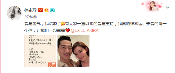 新京报讯 6月6日下午,林志玲公布了结婚的喜讯,并在微博上写道,“爱与勇气,我结婚了,有大家一直以来的爱与支持,我真的很幸运。亲爱的每一个你,让我们一起幸福。”新京报记者第一时间联系到林志玲团队工作人员,被问志玲姐姐结婚消息是不是属实,对方笑着说“当然了!”至于进一步的回复对方说不做进一步透露。 据悉,男方为日本男子组合放浪兄弟成员AKIRA,1981年出生于日本神奈川县大和市,比林志玲小7岁。2004年12月,作为RATHER UNIQUE的表演者正式出道。6月6日,加入放浪兄弟组合。2008年,参演的校园恋爱电影《花样男子》最终篇上映,这是AKIRA首次参演的电影。2012年10月2日,其主演的校园电视剧《麻辣教师GTO》播出。 2011年日本媒体曾报道了AKIRA与长泽正美秘密交往的消息。据悉,长泽和AKIRA都同是静冈县磐田市出身,双方父母都相识“是青梅竹马的关系”。两人在演艺圈出道后,彼此都会经常向对方倾诉公私生活上的烦恼“长久下来,就自然而然地发展成恋人关系”。 ![]() ![]() 随后男方发长文称俩人于6月6日结婚,“自8年前共同主演舞台剧《赤壁 ~爱~》时相识,我与志玲小姐便一直维持着友好情谊。去年底开始的交往,更加深了我们的坚定感情,认定对方是可携手共度余生的伴侣。”并在长文末尾称“我会让你幸福一辈子。” ![]() 八年前,两人相视。 2019年3月,林志玲曾接受新京报记者的专访,谈及关于“催婚”及“恋爱”的话题。>>>林志玲:也会害怕变老的那一天到来,面对催婚很沮丧 新京报:你应该已经处于一个无欲无求的阶段了,如果能有水晶球你最想知道什么? 林志玲:之前也有人问这个问题,我说这是一个陷阱题吗?这是挖了一个坑要我回答吗?(笑)是的,我到目前没有实现的当然是组建自己的家庭。如果有水晶球,我会想知道未来会不会结婚?会不会有孩子?是不是双胞胎?其他好像也不要知道太多。 新京报:面对各路人马的催婚,你是什么心情? 林志玲:我会觉得我怎么一点进步都没有?没有给到你们新的答案,我也很沮丧。 新京报:你会着急、渴望结婚吗?如何正面回应催婚? 林志玲:你们不要再催喽(笑),其实现在像我一样单身的女孩很多,我觉得不要因为所谓的年龄等问题就把自己背负的很多社会价值否定掉,也否定掉自己,我们可以从生活、朋友、工作中去获得现阶段应该有的幸福,那是另外一种幸福。当你准备好的时候,该来的就会如约而至。 |