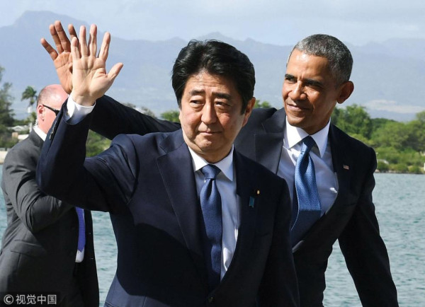 安倍与奥巴马悼念日本偷袭珍珠港事件遇难者(视觉中国) 2016年12月,安倍曾访问美国夏威夷的珍珠港,在太平洋战争的爆发地出席二战战殁者纪念活动,并强调了日美和解的重要性。安倍是第一位访问美国珍珠港的日本首相。