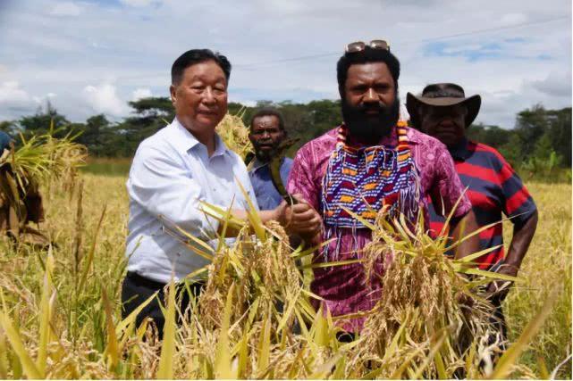 2018年4月25日,福建农林大学研究员、国家菌草工程技术研究中心首席科学家林占熺(左一)在巴布亚新几内亚与当地农民一起庆祝粮食丰产 “通过菌草旱稻技术项目的实施,我们希望使巴新东高地省的农业生产力翻一番,贫困人口收入翻一番,并增加妇女和青年就业。”福建农林大学研究员林占熺在巴新说。签约当天,正好是他的生日。 去年,菌草的品种之一巨菌草在巴新创下每公顷年产鲜草854吨的世界纪录。在巴新,当地人更习惯叫这草为“林草”。在非洲,林占熺是百姓口中的“菌草爸爸”“菌草爷爷”。