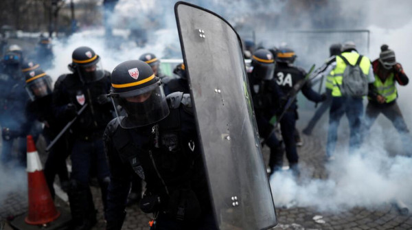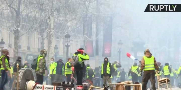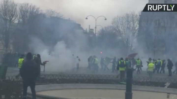 另据“今日俄罗斯”网报道,这已经是连续第二周在巴黎举行抗议活动。防暴警察和示威者之间出现了对峙, 有人用瓶子砸向执法人员,随后警察用催泪瓦斯和水枪进行了回击。