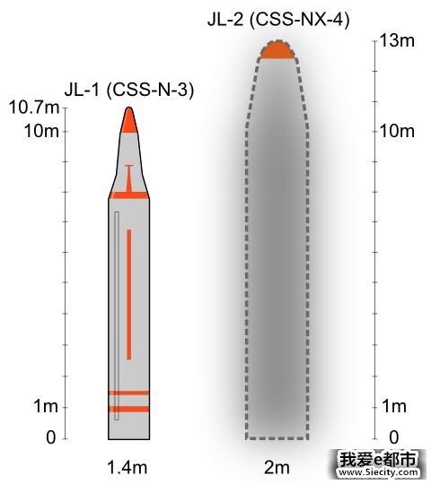 ▲外媒猜测制作的巨浪-1型导弹与巨浪-2型导弹外形对比图 在今年4月南海受阅时,“新型战略核潜艇”也加入了人民海军的舰艇展示行列。