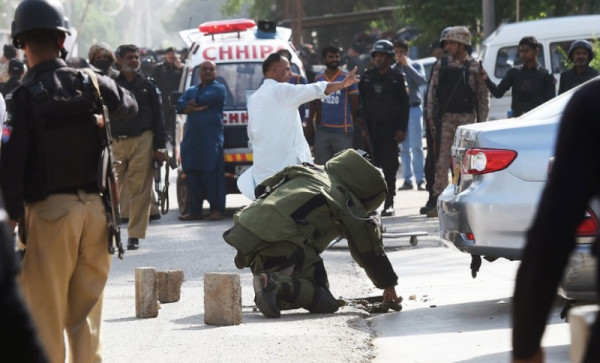 巴基斯坦警方调查现场(法新社) 海外网11月27日电 上周,3名非法武装分子试图闯入中国驻巴基斯坦卡拉奇领事馆未得逞,并在随后的交火中被击毙。近日,巴基斯坦信息部长法瓦德⋅乔杜里(Fawad Chaudhry)表示,这起针对中国驻卡拉奇领事馆袭击的背后,有外国势力介入。 据巴基斯坦Geo新闻网报道,当地时间26日,乔杜里参加了一场在伊斯兰堡举行的活动,这场活动旨在为2名因保护中国领事馆而殉职的警察进行捐款。这位巴基斯坦信息部长表示,国外的敌对势力与这起袭击事件有关,但他也提到,这些势力无法破坏中巴两国的关系。 “我们两国间的关系根深蒂固,经得住时间的考验,”乔杜里这样表示,“中巴间的这种紧密的合作令某些势力感到恼火,这就是为什么他们会采取这种懦弱的行为。”他提到,巴基斯坦的安全部队和人民都在反恐斗争中做出了牺牲,而巴方的行动已经表明,他们仍将坚定地打响对抗恐怖主义的斗争。