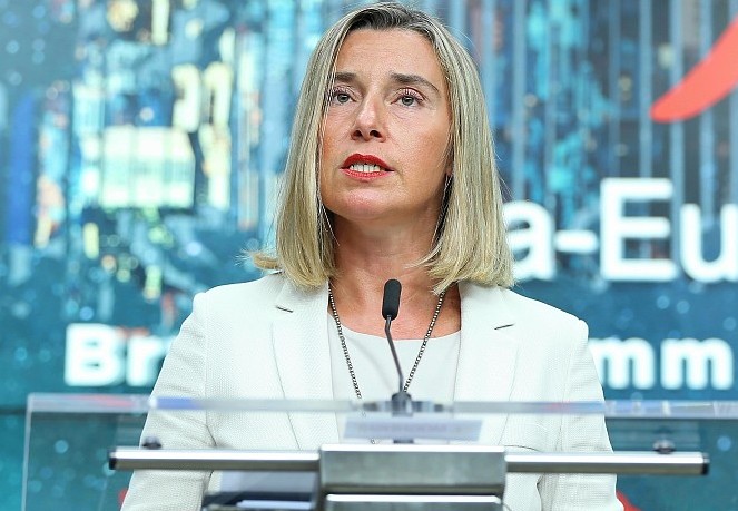 欧盟外交安全政策高级代表莫盖里尼 图源:视觉中国 亚洲新闻台(channelnewsasia)28日报道,经过三天的讨论后,欧盟成员国未能就在声明中加入制裁俄罗斯的内容达成一致。 欧盟2014年就追随美国,因克里米亚问题对俄罗斯施加大范围制裁。 而在这次“刻赤海峡事件”中,部分欧盟成员(尤其是波兰),希望布鲁塞尔能够更加强硬,实施新一轮制裁。 法德两国作为“明斯克协议”的担保人,表现得更为谨慎。该协议意在通过外交手段和平解决乌克兰东部的冲突。 欧盟轮职主席国奥地利的外交部长克奈斯尔周二表示,是否制裁俄罗斯“现在不好说”,“有必要评估局势”。 波兰总统杜达则更为积极,表示若未来欧盟决定制裁俄罗斯,波兰也会加入其中。