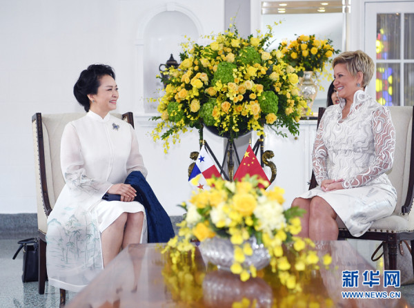 当地时间12月3日,国家主席习近平夫人、世界卫生组织结核病和艾滋病防治亲善大使、联合国教科文组织促进女童和妇女教育特使彭丽媛应邀在巴拿马总统府会见巴拿马总统夫人、联合国艾滋病规划署拉美区特别亲善大使、巴拿马全国幼儿综合护理理事会主席卡斯蒂略,并共同出席艾滋病防治公共宣传活动。 新华社记者燕雁摄
