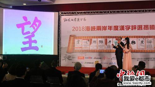 12月14日,“海峡两岸年度汉字评选”揭晓,“望”字拔得头筹。图为台湾中华书学学会会长张炳煌现场公布这一获选汉字,并以不同字体进行展示。中新社记者 张晓曦 摄 今年,海峡两岸的汉字评选由各界知名人士推荐,经两岸逾1000万名网友投票,选出最能代表两岸现象的汉字。最终,“望”字拔得头筹。登高望远、展望未来、期望和平……字里行间,蕴含了两岸民众的共识与期盼。 而谷歌公布的2018年度搜索词则是一个简单的“Good”(好)。网友们搜索最多的问题包括世界上发生的好事、好消息、值得观看的好作品、如何成为一名好公民、怎样才算是好榜样等。