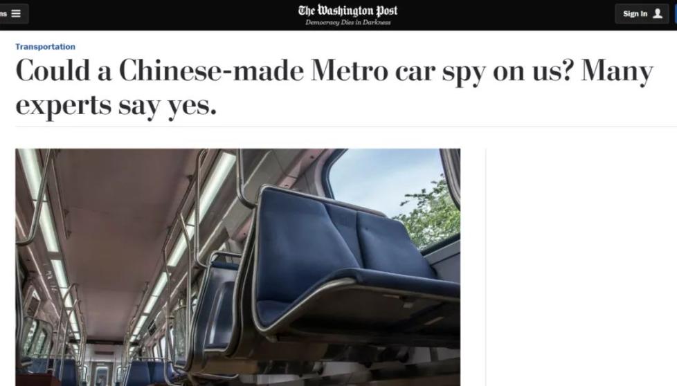 更别提在过去这两年,由西方情报口发起的对“中国制造”的污蔑攻势更是有增无减。他们通过与情报口“关系紧密”的西方媒体记者构建了强大的“舆论霸权”,对中国企业形成了舆论上的“围剿”乃至“绞杀”势头,并已经对中国企业在海外市场的发展和客户的信心造成了实质性的损害。 除了抖音这个案例,另一个典型的案例发生在5天前。美国《华盛顿邮报》刊登了一篇报道,宣称“中国中车”集团卖到美国一些城市的地铁列车是“特洛伊木马”,将会被中国政府用来监听美国,并找了一群军方和西方情报口的人员为这一指控“背书”。