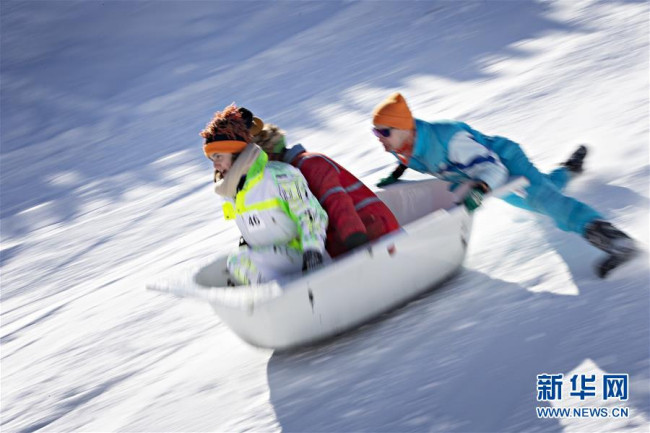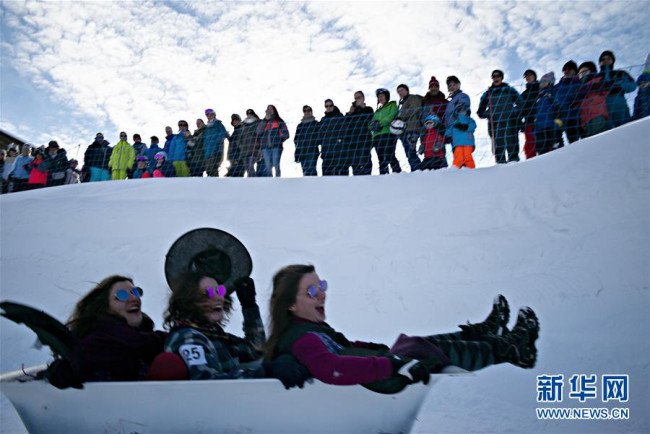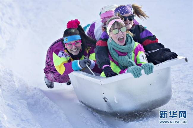 当日,一场别开生面的浴缸滑雪赛在瑞士阿尔卑斯山区的施图斯镇举行,约100支队伍参加了比赛。