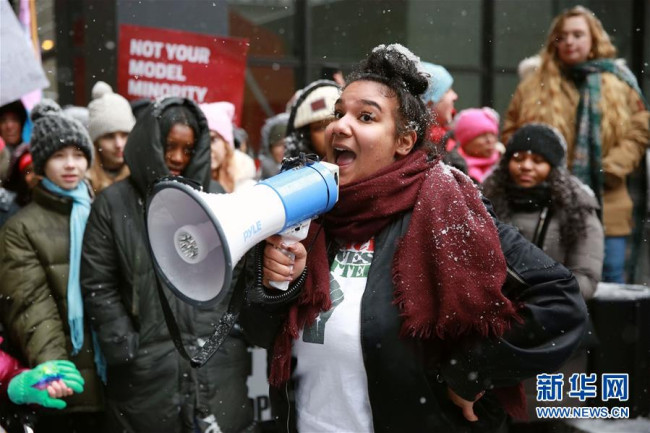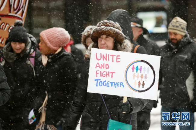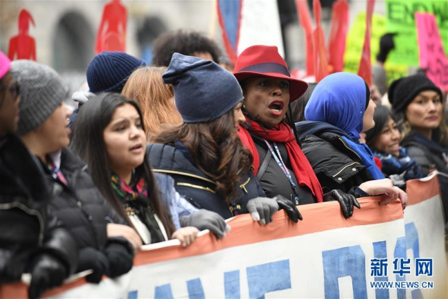 “2019年女性大游行”19日在美国多地举行。游行参与者呼吁保护和提升女性权益,更多关注性别歧视、种族歧视、社会不公等一系列问题。