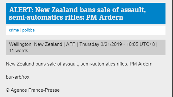 法新社报道截图 【环球网报道 记者 朱梦颖】法新社刚刚消息,新西兰总理阿德恩21日宣布,立即禁止出售突击步枪和半自动式步枪。此前,新西兰克赖斯特彻枪击案致50人死亡。 “我宣布,新西兰将禁止所有军用设计的半自动武器,我们还将禁止所有突击步枪,”阿德恩说,在立法措施生效前,还将宣布临时措施以阻止购买热潮。 阿德恩还补充说,大容量弹匣和类似于撞火枪托的装置也将被禁止。“简而言之,周五恐怖袭击中使用的每种半自动武器都将在这个国家被禁止,”她说。 当地时间3月15日下午,新西兰克赖斯特彻奇(也被称为基督城)两座清真寺遭遇恐怖袭击,造成至少50人死亡,50人受伤。“新西兰发生了近30年来最严重的枪击案。”美国有线电视新闻网(CNN)称。15日,全世界为倒在袭击者枪口下的无辜民众而悲痛,对这一暴行感到愤怒。“这是新西兰最黑暗的日子之一。”该国总理阿德恩对这一“耸人听闻、史无前例的暴力行为”表示强烈谴责。 与此同时,控枪问题再成备受关注的议题。根据新西兰警方的数据,该国去年发生48起凶杀案,创40年来新低。由于治安良好,新西兰警察通常不配带枪支。路透社称,这与该国高拥枪率、极易持有武器的现状“严重不符”。在克赖斯特彻奇恐袭惨案发生后,这种反差被暴露在聚光灯下。改革枪支管理法成为阿德恩在恐袭之后宣布的首个应对措施之一。18日,新西兰内阁将开会讨论此事。 |