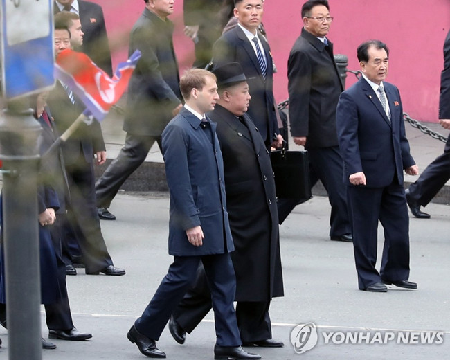 据俄罗斯塔斯社刚刚消息,朝鲜最高领导人金正恩的专列已于当地时间24日17时50分(北京时间15时50分)抵达符拉迪沃斯托克火车站。 金正恩抵达符拉迪沃斯托克(图源:韩联社)