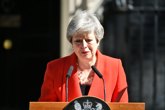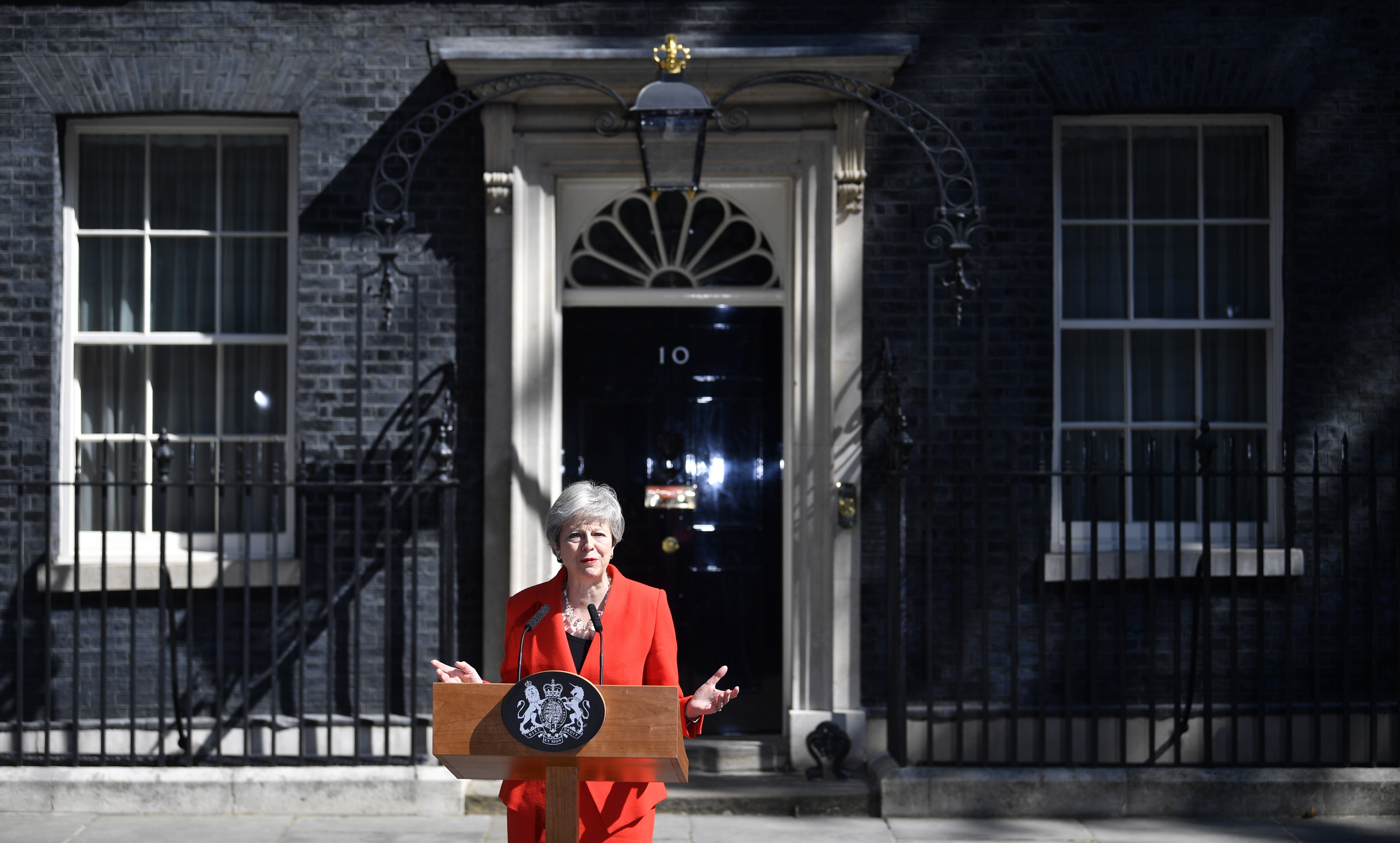 当地时间2019年5月24日,英国伦敦,英国首相特雷莎·梅在唐宁街10号外发表讲话。 英国首相特雷莎·梅宣布将于6月7日辞去保守党领袖一职。 “我已竭尽所能说服议员支持这个协议......遗憾的是我无法做到这一点。”特雷莎·梅当天在唐宁街10号发表讲话时说。 英国《泰晤士报》23日援引英国内阁消息人士的话称,首相特雷莎·梅可能于24日宣布辞职。
