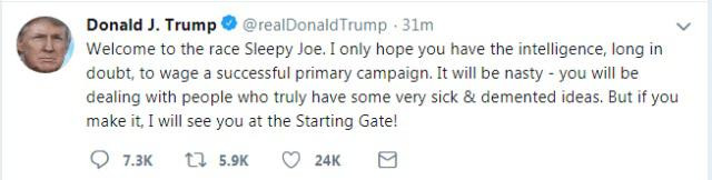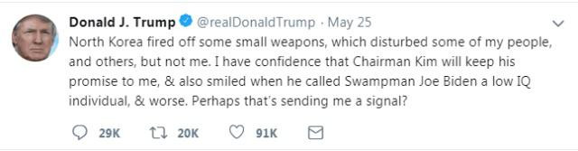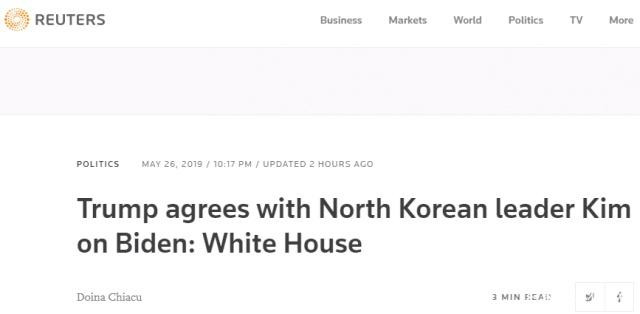 【环球网报道 记者 侯佳欣】当地时间26日,美国白宫发言人莎拉·桑德斯在接受美国全国广播公司(NBC)采访时称,美国总统特朗普与朝鲜最高领导人金正恩在关于拜登的评价上达成了一致:他们都认为民主党总统参选人乔·拜登智商低。 ![]() (路透社报道截图) 据路透社26日报道,当日,特朗普在访问日本期间发布一条推特,其中包含对了拜登的评价。特朗普在推文中称,“朝鲜发射了一些小武器,这令我们国家和其他国的一些人感到头疼,但我没有。我有信心金委员长会信守他对我的承诺,而且当他说乔·拜旦(Bidan,疑似为对拜登的错拼)智商低,甚至更糟糕的话时,我也笑了。或许这是发送给我的信号?” ![]() (特朗普推特截图) 在接受NBC采访时,桑德斯说:“我认为他们(特朗普和金正恩)在对前副总统拜登的评价方面达成了一致。” 接下来,她还补充说,“总统不需要别人来帮他评价拜登,他已经很多次给出自己的评价了。” 报道称,拜登竞选团队表示,他们将不会就桑德斯的言论发表新声明。 18日,民主党总统候选人拜登在费城的竞选活动中发问:“我们是一个向普京或金正恩这样的独裁者和暴君张开怀抱的国家吗?”。 作为回应,朝中社21日刊发题为《连人类最起码的品格都不具备的败类徒劳的丑态》的文章,称美国前副总统拜登亵渎朝鲜最高尊严,是无可容忍的严重政治挑衅。 朝中社表示,美国国内就拜登参选不断出现“低智商蠢货”的嘲笑和“不用寄予太大期待”的评论,并不是偶然的。连美国媒体也评论称,拜登爱讲话但不懂慎重用词,讽刺他的嘴是“像神经病患者一样随便絮絮叨叨的嘴”。 朝中社还说,据说拜登还自吹自擂,夸自己是最受欢迎的总统候选人,实在令人哭笑不得。这样一个信口开河、疯疯癫癫的人搞政治,又能搞出什么样子,是不言而喻的。 其实,特朗普曾不止一次调侃拜登的智商。在拜登宣布参选时,特朗普曾发布推文称,“欢迎加入比赛,昏昏欲睡的乔。我唯一希望的是,你有足够的智慧,完成一次成功的初选。这会很险恶。你将与那些真正病态且疯狂的人打交道。如果你成功了,我们在起跑点见!” ![]() (特朗普推特截图) |