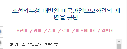 朝中社报道截图 【环球网报道 记者 丁洁芸】5月27日,朝中社刊发题为《朝鲜外务省发言人谴责美国总统国家安全事务助理博尔顿诡辩》的文章。就博尔顿指责朝鲜进行军事训练一事,朝鲜外务省发言人称其“惊人地无知”,并表示禁止朝鲜使用弹道技术发射本身,是让“朝鲜放弃其自卫权”。 朝鲜外务省发言人在回答朝中社提问时表示,美国国家安全事务助理博尔顿指责朝鲜军队的正常性军事训练违反联合国安理会“决议”,看来他惊人地无知。“不管什么东西,一旦发射,就会划着弹道飞行。但不是去讨论射程,而要禁止使用弹道技术的发射本身,终归等于让朝鲜放弃自卫权。” 本月4日和9日,朝鲜发射多枚飞行物。美国总统特朗普曾发推表示,朝鲜最高领导人金正恩不会违背对他的承诺。不过,包括博尔顿在内的其他美方人士则指责这些导弹试射“违反了联合国决议”。8日,朝鲜外务省发言人在答记者问时,就曾谴责一些势力指责朝鲜开展正常军事训练。 而在27日的这份声明中,朝鲜外务省发言人认为,朝鲜的军事训练既不针对任何国家,也未对周边国家造成危险。可博尔顿贸然对别人家的事颐指气使,硬说它“违反决议”,看来他确实具有与一般人不同的思维结构。 该发言人还提到,就像博尔顿亲口承认,他曾扮演撕毁1994年《朝美核框架协议》的铁锤角色,并把朝鲜指定为“邪恶轴心”,炮制先发制人打击、制度更换等各种挑衅性政策,是众所周知的对朝“战争狂人”。 该发言人称,不仅如此,博尔顿还曾主导伊拉克战争,在为破坏数十年保证欧洲和平的《中导条约》中充当急先锋,近期又为在中东和南美洲发动新的战争东奔西走,战争狂的臭名远扬。该发言人认为,美国国内最近有人批评博尔顿自己不愿死在东南亚的水田里躲避服兵役,却向总统献策发动战争的好战分子,并非偶然。 文章说,总之,与其称博尔顿是以保障安全为使命的安全助理,倒不如称其为破坏和平与安全的安全破坏助理。 文章最后表示,从思路歪的歹徒嘴巴自然吐出歪心眼的废话不足为奇,这样的人间废品应被立即报废。 |