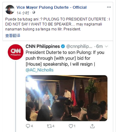 ![]() 杜特尔特与儿子保罗。(图源:CNN) 海外网5月28日电菲律宾总统杜特尔特日前表示,如果儿子保罗竞选众议院议长,他将辞职,因为家里从政的人太多。 综合CNN、《海峡时报》报道, 杜特尔特周一(27日)在总统府讲话时说,“我们家(在政府任职的人)太多了,保罗的姐姐(萨拉·杜特尔特)是市长,我的小儿子(巴斯蒂安·巴斯特·杜特尔特)是副市长。”杜特尔特补充说,“如果保罗当上了议长,我又是总统,这样不太好”。 杜特尔特直言,儿子常常不听他的。“如果他坚持竞选,那就去吧”,但杜特尔特要求保罗在宣布竞选前三天通知他,这样他才能递交辞呈。 据菲律宾ABS-CBN新闻网报道,杜特尔特的长子保罗·杜特尔特目前任达沃市众议员。 ![]() 在父亲公开表态后,保罗也在社交账号上公开回应,称自己无意竞选议长。他还调侃父亲说,“总统先生,有人误传给你错的消息”。 今年5月13日,菲律宾进行中期选举投票,执政党阵营和反对党阵营4.35万名候选人参选,争夺大约1.8万个国会参议员和省市地方官员职位。菲总统杜特尔特的三个儿女均赢得选举胜利。 ![]() 由左至右:保罗·杜特尔特、萨拉·杜特尔特、巴斯蒂安·巴斯特·杜特尔特。(图源:Rappler新闻网) 杜特尔特的长子保罗·杜特尔特以19.654万张选票击败了他的两名竞争对手,赢得达沃市第一个立法区席位。杜特尔特女儿、现任达沃市市长萨拉·杜特尔特以压倒性优势赢得连任。杜特尔特的小儿子巴斯蒂安·巴斯特·杜特尔特也当选了达沃市副市长。 |