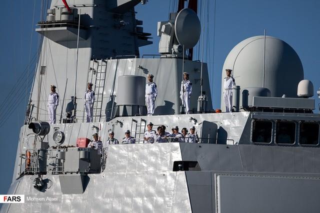 日前,伊朗法尔斯通讯社发布一组赴伊朗参加中俄伊海上联合演习的解放军海军052D型导弹驱逐舰西宁舰抵达伊朗恰巴哈尔港并受到伊朗海军热烈欢迎的图片,在西宁舰进入恰巴哈尔港时,舰上官兵整齐列队站坡致敬。