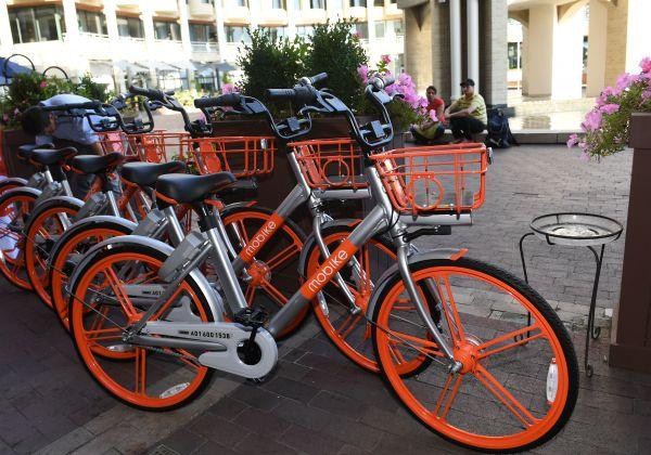 资料图:几辆摩拜单车停在美国首都华盛顿街头。 |